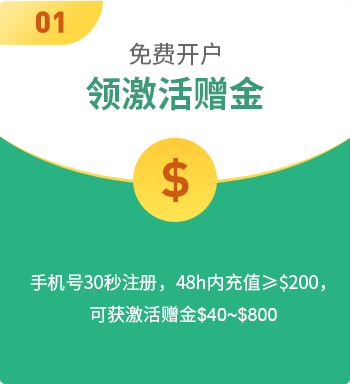 | 注册48h 激活赠金 | $40 | $300 | $500 | $800 | |